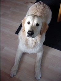 Stolt visar Boston upp sitt 4:e pris som han fick på slutprovet efter grundkursen på brukshundsklubben