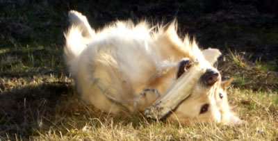Så kom den härliga varma vårdagen och Boston myser i gräset.