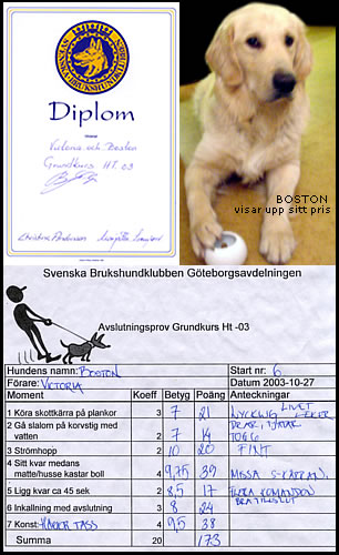 Kursen var inte tävlingsinriktad men den gick ändå igenom alla viktiga grundmoment för att kunna fortsätta med lydnadsträning sedan. Avslutningsprov